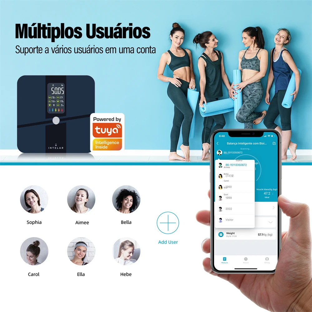 Garanta sua balança Inteligência de Bioimpedância Digital App Tuya para descobrir o desempenho do seu corpo e tenha um estilo de vida mais sádico!