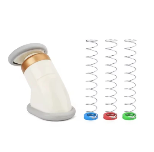 1?? Escolha uma das três molas de resistência (iniciante, intermediário ou avançado) e encaixe no aparelho